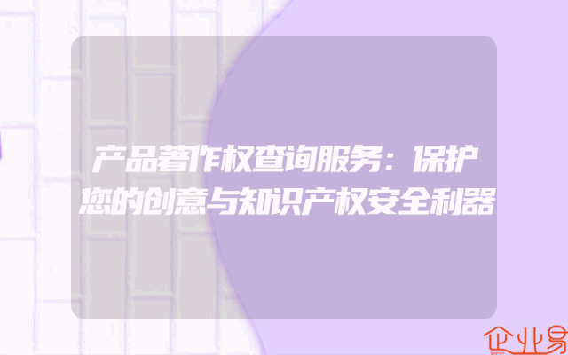 - 产品著作权查询服务:保护您的创意与知识产权安全利器