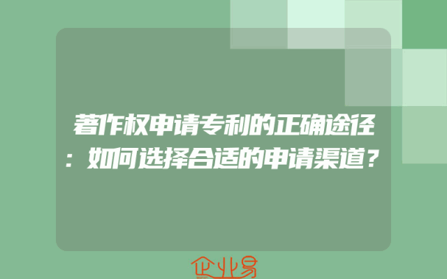 - 著作权申请专利的正确途径:如何选择合适的申请渠道?