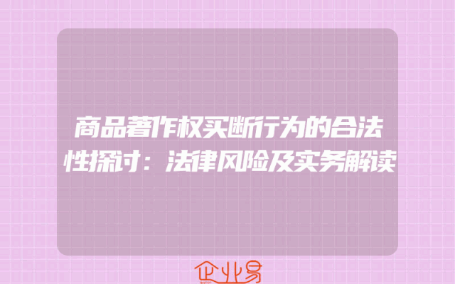 - 商品著作权买断行为的合法性探讨:法律风险及实务解读