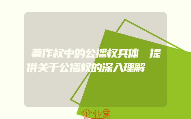 - 著作权中的公播权具体 提供关于公播权的深入理解