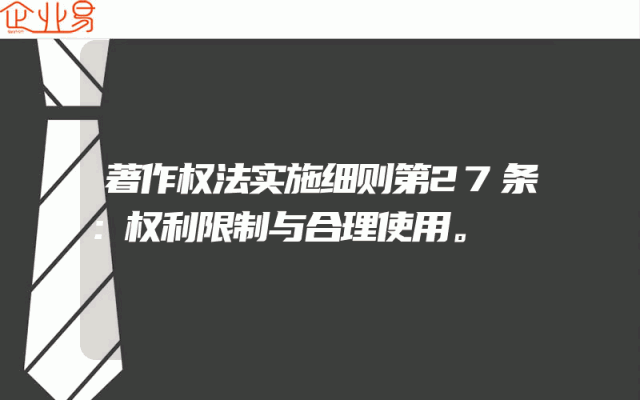 - 著作权法实施细则第27条:权利限制与合理使用。