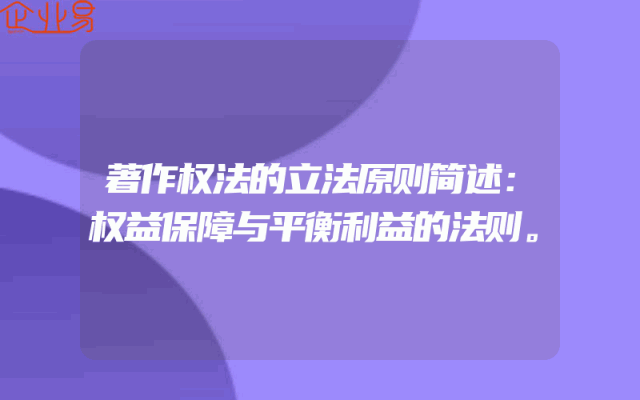 - 著作权法的立法原则简述:权益保障与平衡利益的法则。