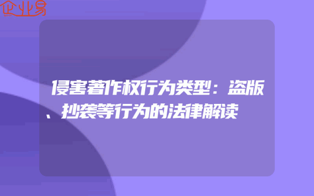 - 侵害著作权行为类型:盗版、抄袭等行为的法律解读