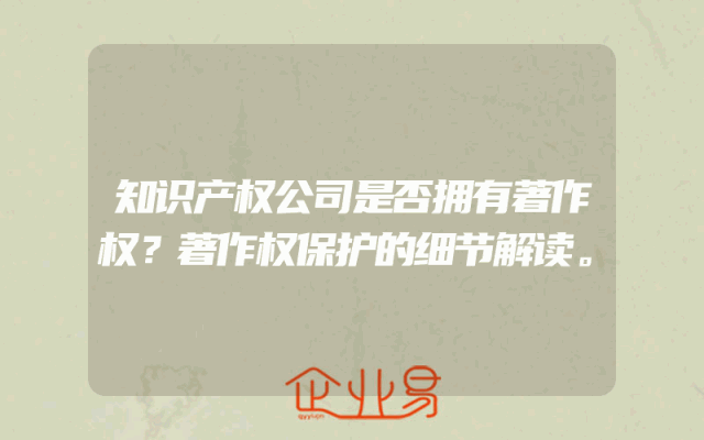 - 知识产权公司是否拥有著作权?著作权保护的细节解读。