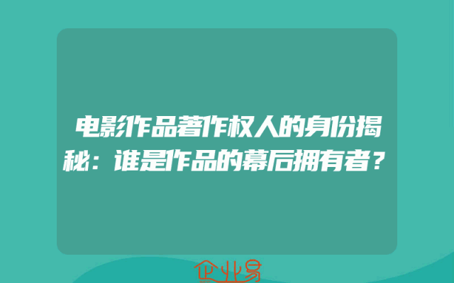 - 电影作品著作权人的身份揭秘:谁是作品的幕后拥有者?