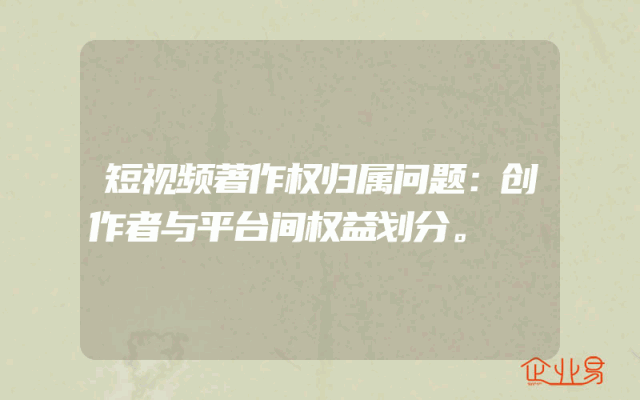 - 短视频著作权归属问题:创作者与平台间权益划分。