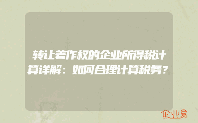 - 转让著作权的企业所得税计算详解:如何合理计算税务?