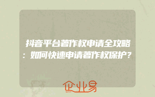 - 抖音平台著作权申请全攻略:如何快速申请著作权保护?