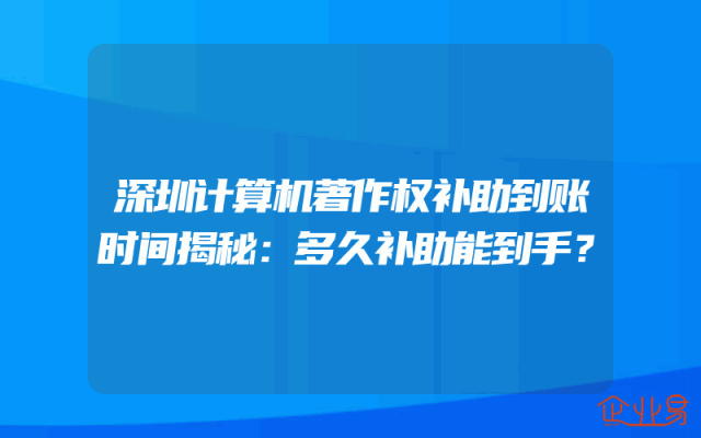 - 深圳计算机著作权补助到账时间揭秘:多久补助能到手?
