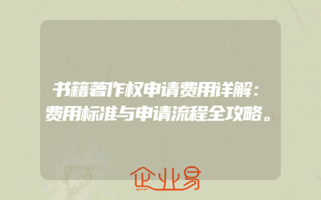 - 书籍著作权申请费用详解:费用标准与申请流程全攻略。