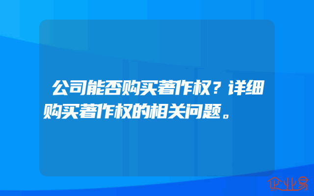 - 公司能否购买著作权?详细购买著作权的相关问题。