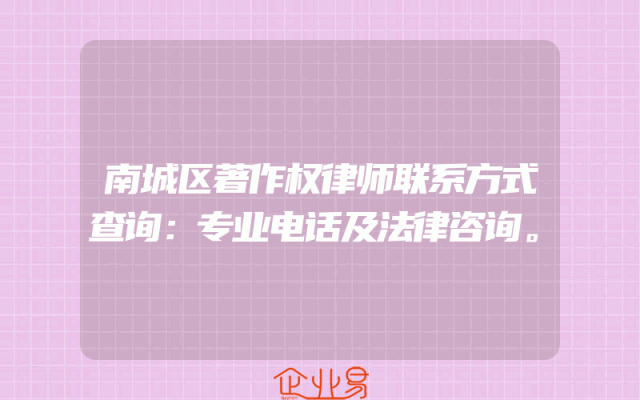 - 南城区著作权律师联系方式查询:专业电话及法律咨询。