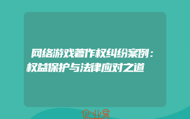- 网络游戏著作权纠纷案例:权益保护与法律应对之道
