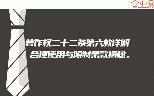 - 著作权二十二条第六款详解:合理使用与限制条款揭秘。