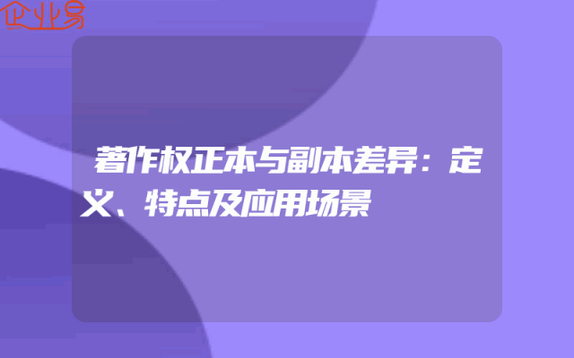 - 著作权正本与副本差异解析:定义、特点及应用场景解析一、著作权正本与副本的概念定义在知识产权领域,著作权是保护原创作品的重要法律工具。著作权正本与副本的差异解析,是理解和应用著作权的重要环节。著作权正本,通常指的是著作权的原始载体或者原始文件