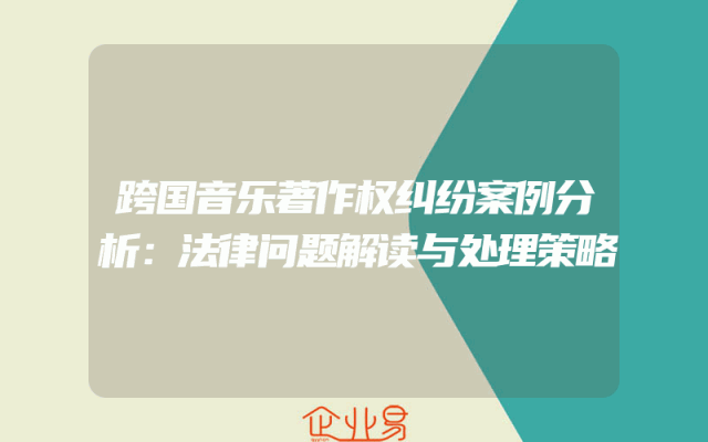 - 跨国音乐著作权纠纷案例分析:法律问题解读与处理策略