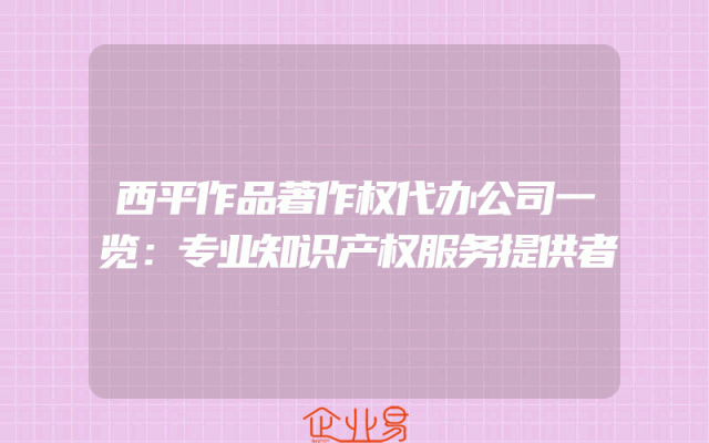 - 西平作品著作权代办公司一览:专业知识产权服务提供者