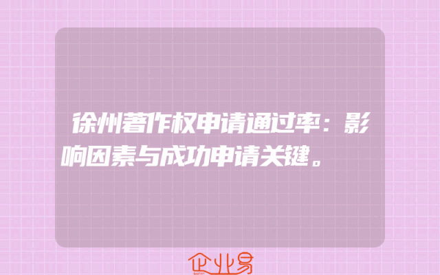 - 徐州著作权申请通过率:影响因素与成功申请关键。