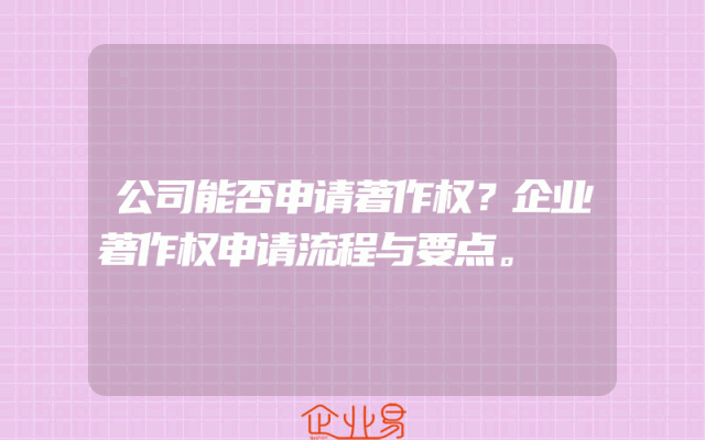 - 公司能否申请著作权?企业著作权申请流程与要点。