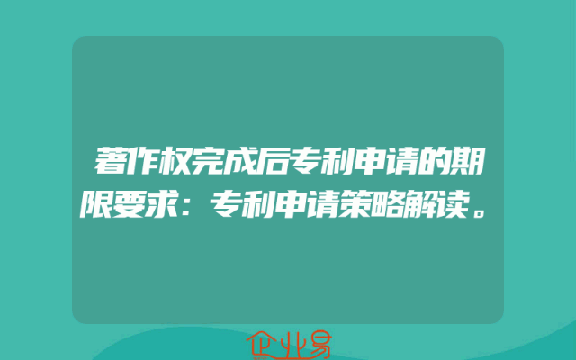 - 著作权完成后专利申请的期限要求:专利申请策略解读。