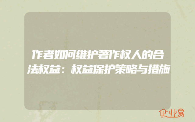 - 作者如何维护著作权人的合法权益:权益保护策略与措施
