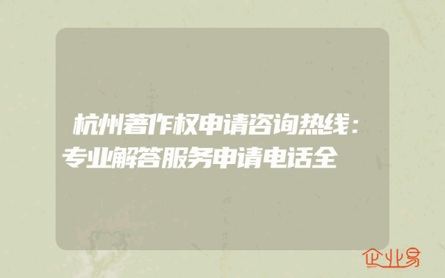- 杭州著作权申请咨询热线:专业解答服务申请电话全