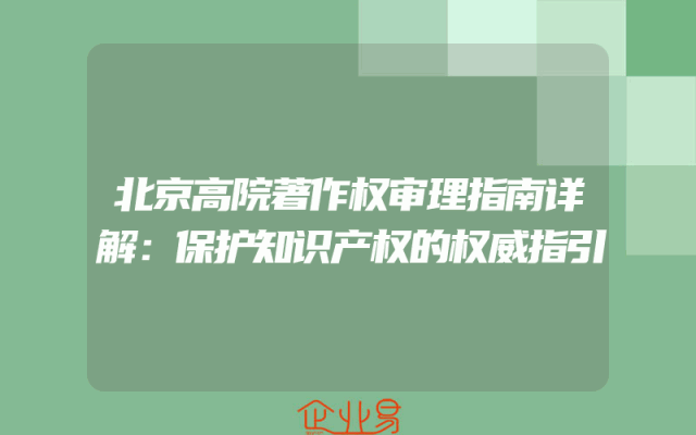 - 北京高院著作权审理指南详解:保护知识产权的权威指引