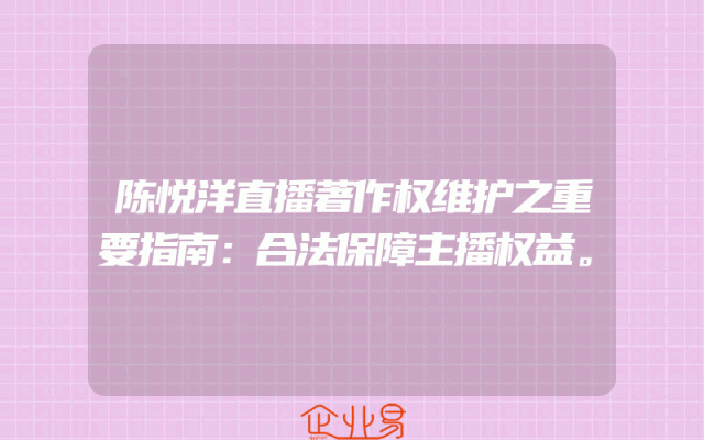 - 陈悦洋直播著作权维护之重要指南:合法保障主播权益。