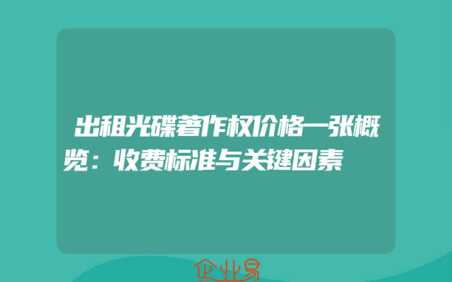 - 出租光碟著作权价格一张概览:收费标准与关键因素
