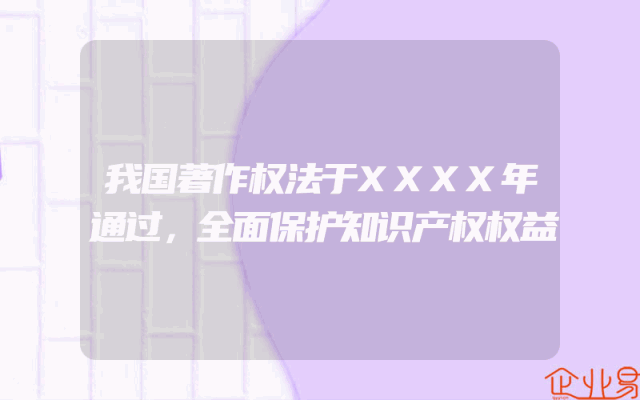 - 我国著作权法于XXXX年通过,全面保护知识产权权益