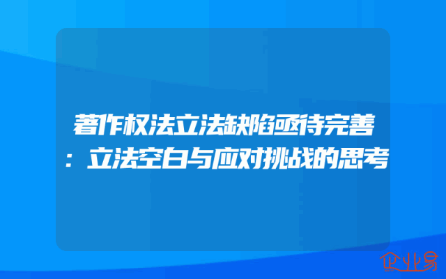 - 著作权法立法缺陷亟待完善:立法空白与应对挑战的思考