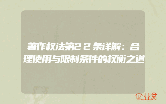 - 著作权法第22条详解:合理使用与限制条件的权衡之道