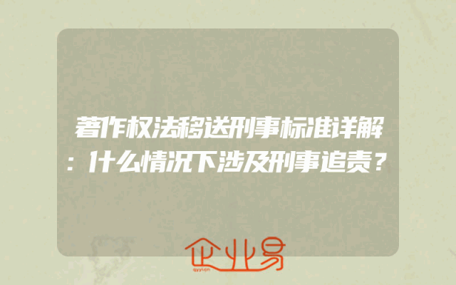- 著作权法移送刑事标准详解:什么情况下涉及刑事追责?