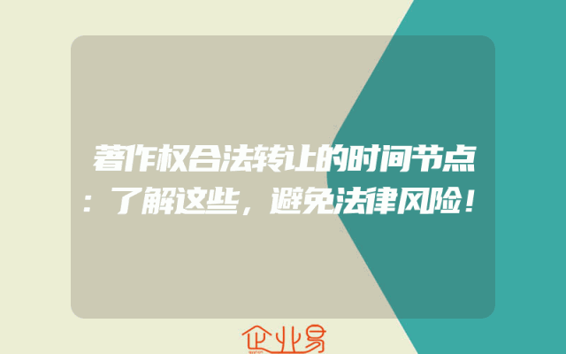 - 著作权合法转让的时间节点:了解这些,避免法律风险!