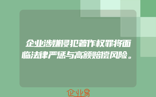 - 企业涉嫌侵犯著作权罪将面临法律严惩与高额赔偿风险。