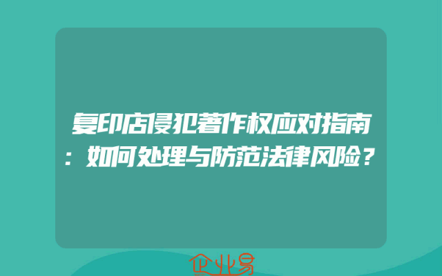 - 复印店侵犯著作权应对指南:如何处理与防范法律风险?