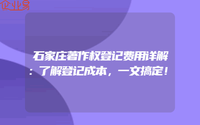 - 石家庄著作权登记费用详解:了解登记成本,一文搞定!