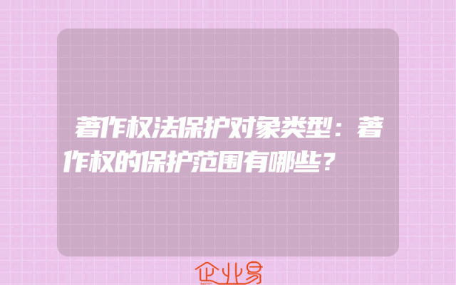 - 著作权法保护对象类型:著作权的保护范围有哪些?