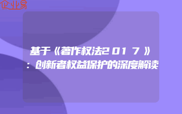 - 基于《著作权法2017》:创新者权益保护的深度解读