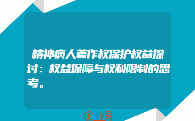 - 精神病人著作权保护权益探讨:权益保障与权利限制的思考。