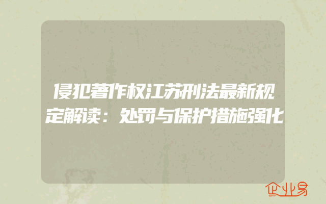- 侵犯著作权江苏刑法最新规定解读:处罚与保护措施强化