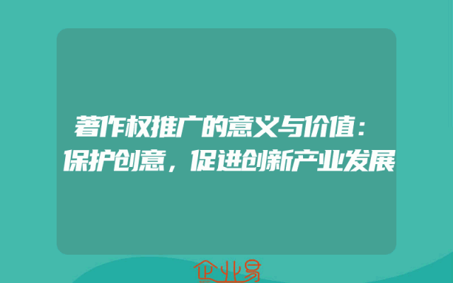 - 著作权推广的意义与价值:保护创意,促进创新产业发展