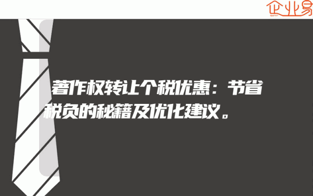 - 著作权转让个税优惠:节省税负的秘籍及优化建议。