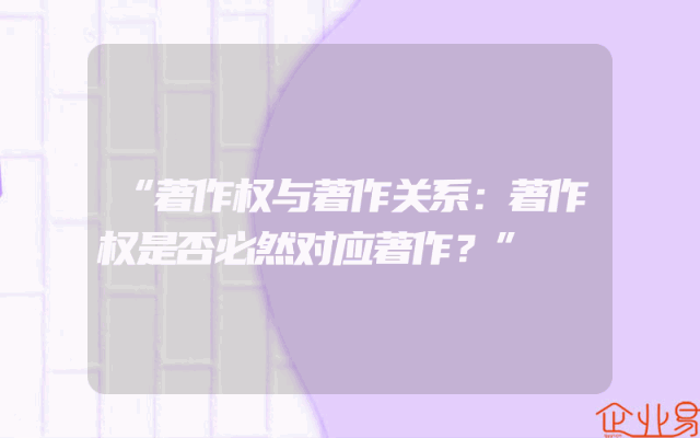 - “著作权与著作关系:著作权是否必然对应著作?”