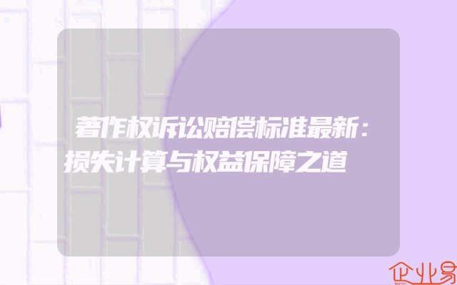 - 著作权诉讼赔偿标准最新:损失计算与权益保障之道
