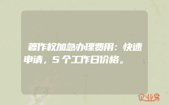 - 著作权加急办理费用:快速申请,5个工作日价格。