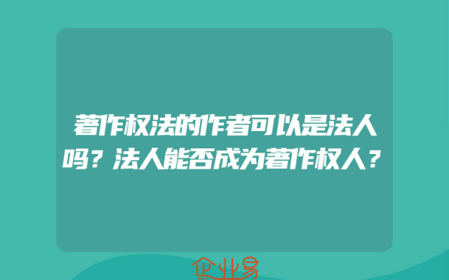 - 著作权法的作者可以是法人吗?法人能否成为著作权人?