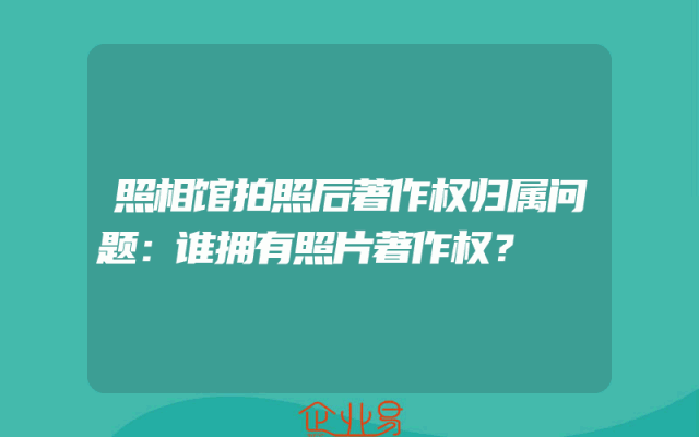 - 照相馆拍照后著作权归属问题:谁拥有照片著作权?