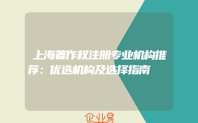 - 上海著作权注册专业机构推荐:优选机构及选择指南