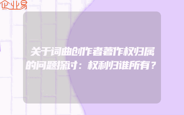 - 关于词曲创作者著作权归属的问题探讨:权利归谁所有?